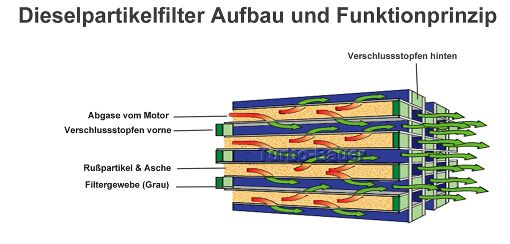 Daher ist das reinigen eines Dieselpartikelfilters im Eingebauten Zustand aus technischen Gründen nahezu unmöglich, weil die Asche durch die verschlossenen Filterkanäle am ende des Dieselpartikelfilter nicht entfernt werden können.